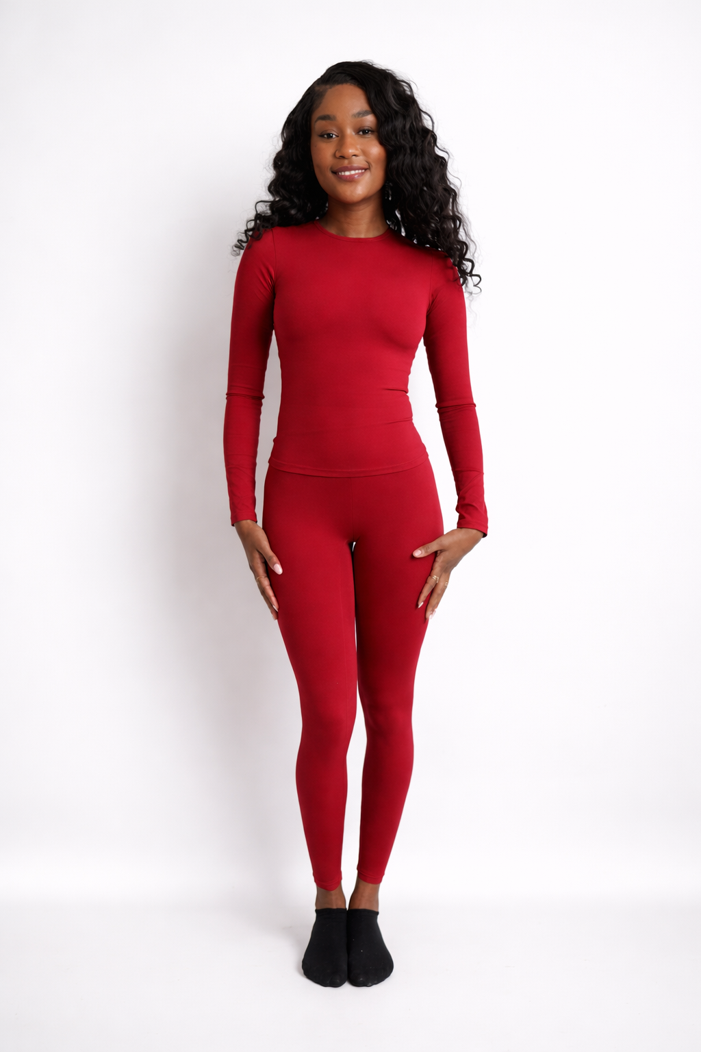 The Scarlet Resolve Long Sleeve Leggings Set is made for moments when you want to feel powerful, sculpted, and impossible to ignore. This two-piece set is designed to hug your curves, enhance your shape, and deliver a snatched, supportive fit the moment you put it on.